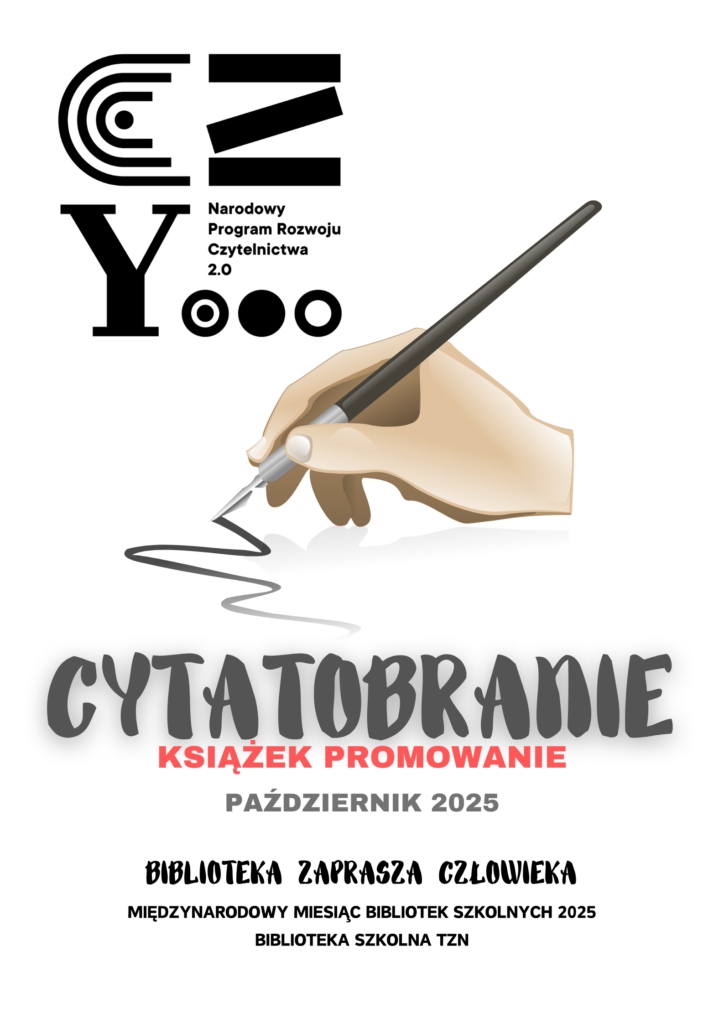 Weź udział w inspirującej akcji czytelniczej „Cytatobranie”. Przed wejściem do biblioteki umieściliśmy specjalną tablicę z inspirującymi cytatami, które możesz zabrać ze sobą. Mamy nadzieje, że cytat zainspiruje Cię do przeczytania książki. Cytaty na tablicy pochodzą z książek znajdujących się w naszym księgozbiorze. Cytaty będą wywieszane na bieżąco i nie będą się powtarzać. Akcja trwa przez cały październik 2025r.
