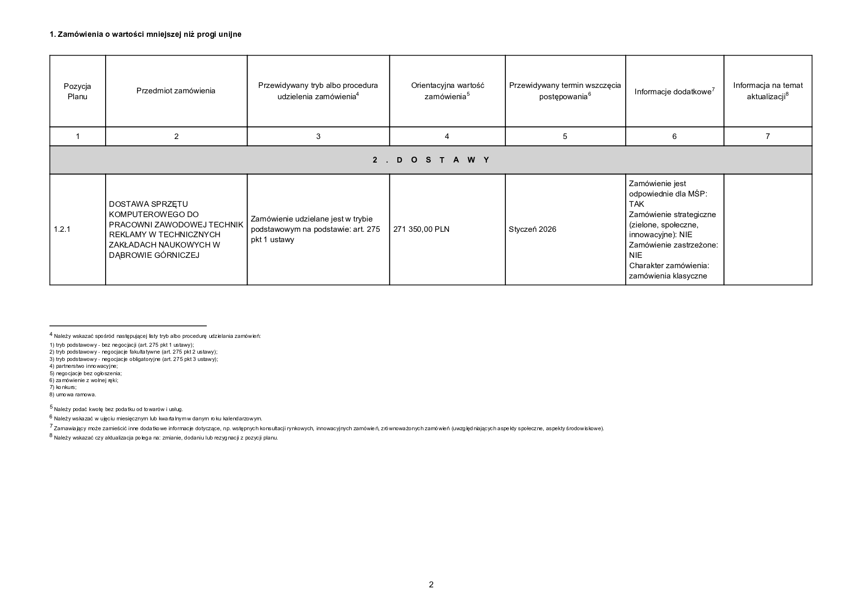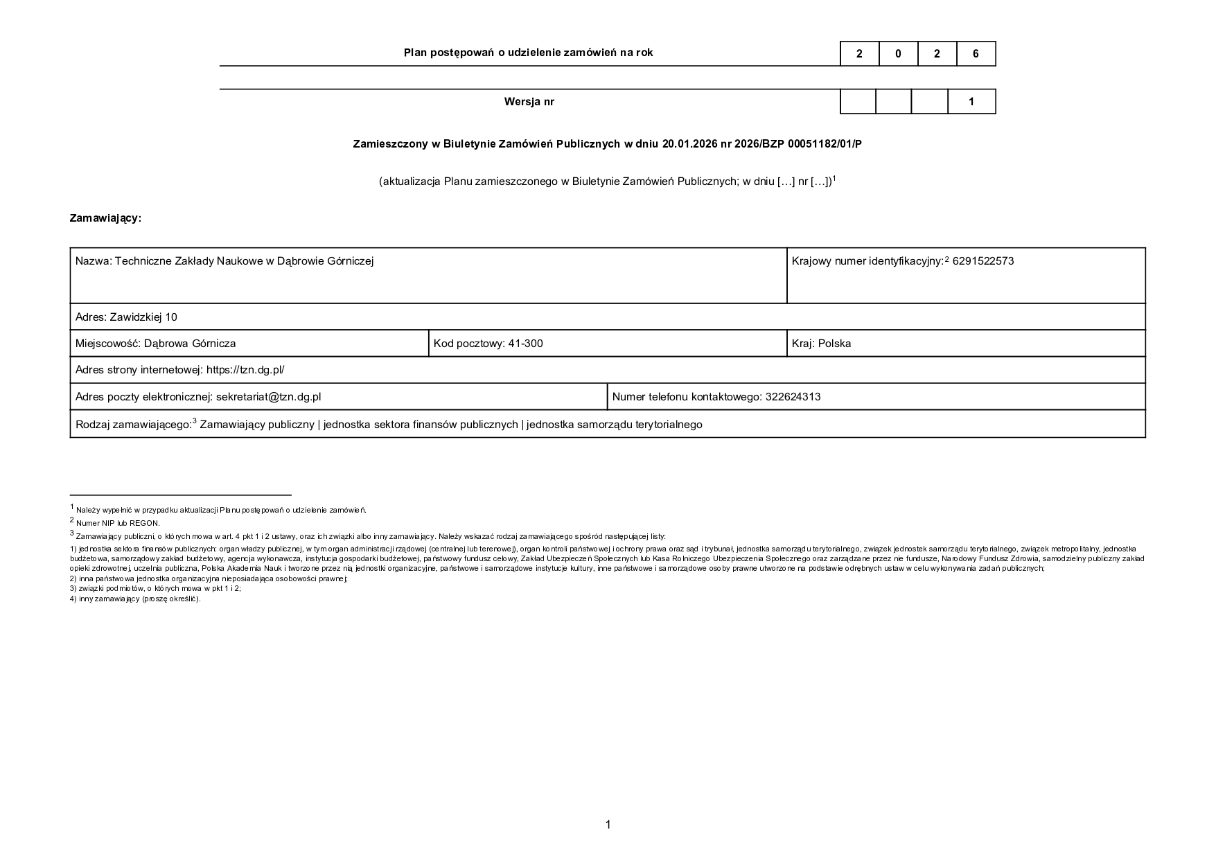 Plan postępowań o udzielenie zamówień na rok 2026 – wersja nr 1
