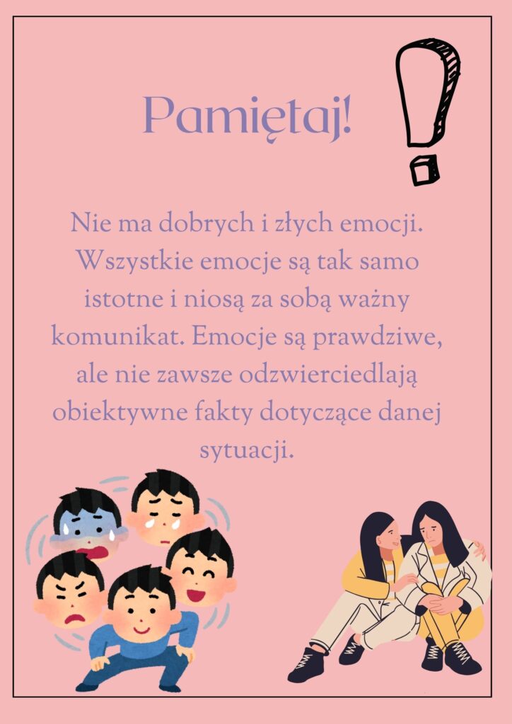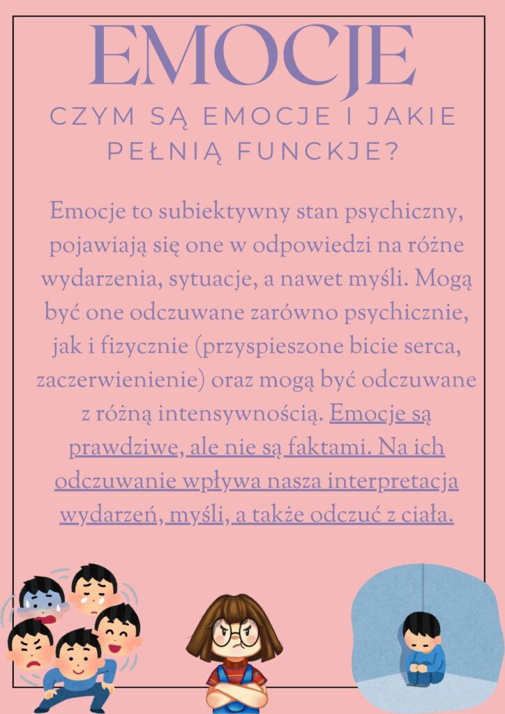 Emocje to nie przypadkowe uczucia – każda z nich niesie ważny komunikat. Pomagają nam zrozumieć, co się z nami dzieje, lepiej reagować na sytuacje i budować relacje z innymi. Rozpoznawanie emocji to pierwszy krok do lepszego radzenia sobie ze stresem, konfliktami i codziennymi wyzwaniami.