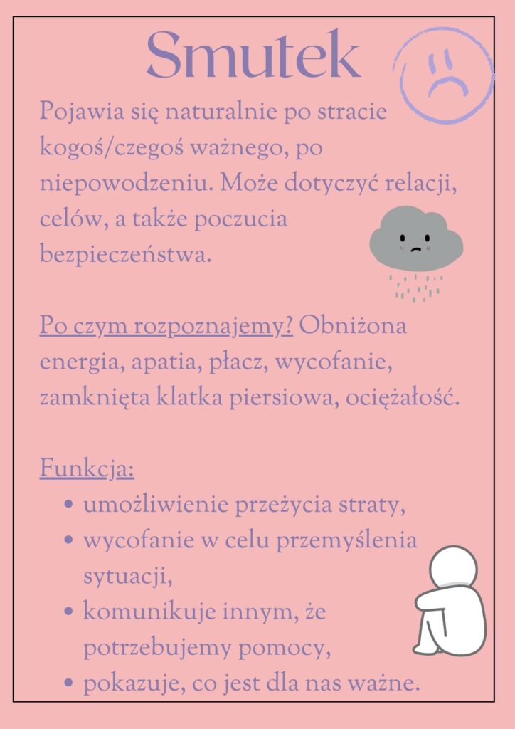 Na infografikach poniżej znajdziesz opisy najczęstszych emocji i ich funkcji – sprawdź, co Twoje emocje próbują Ci powiedzieć.