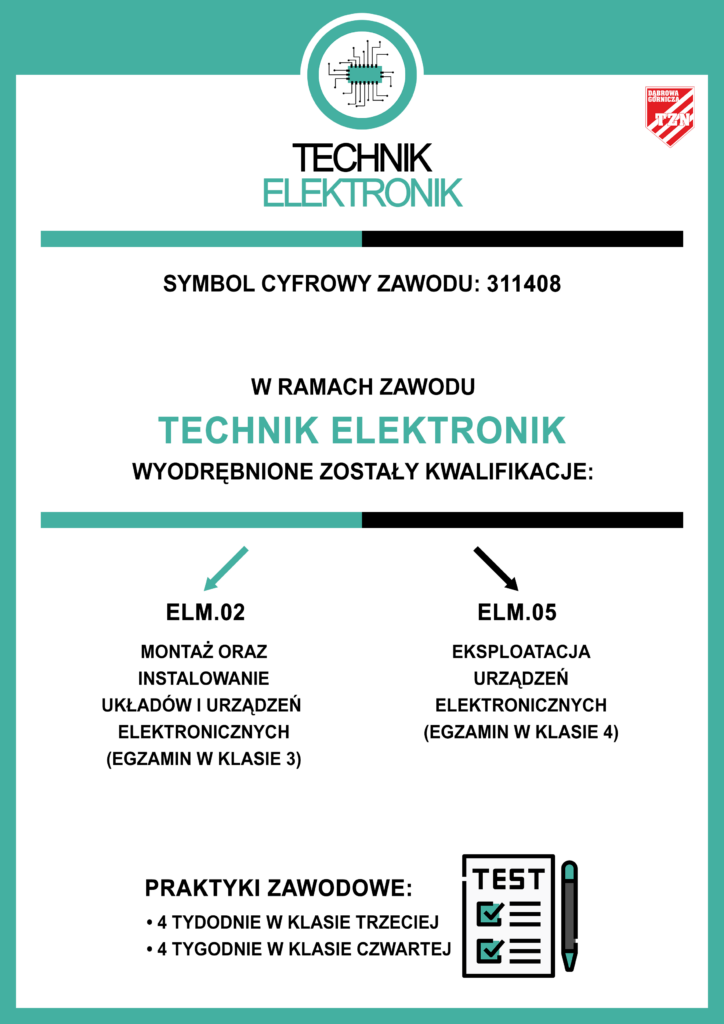 Uczeń, który zda egzamin zawodowy w kwalifikacji ELM.02 lub ELM.05,